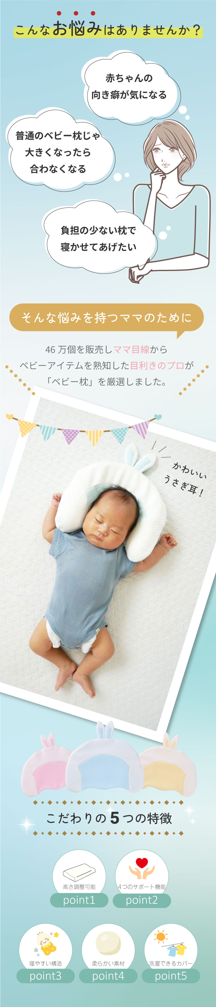 ベビー枕の楽天商品ページを制作しました(既存ページのリニューアル)。赤ちゃんを包み込むようなふんわりしたデザインに仕上げております。