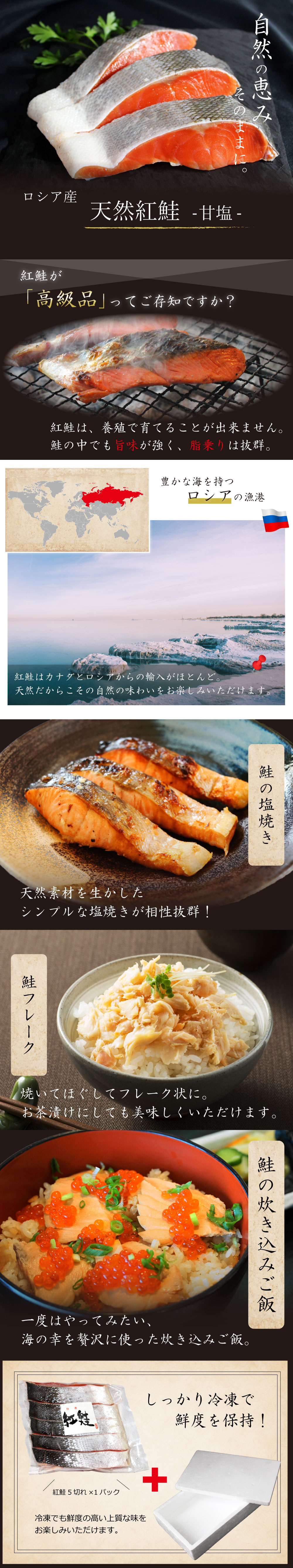 紅鮭の楽天商品ページを制作しました。紅鮭の鮮やかな赤身が引き立つように撮影し、「天然」・「高級品」をアピールしております。